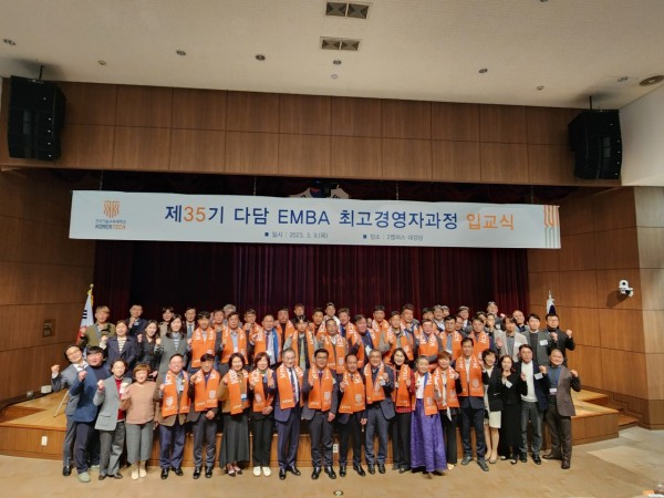 23년 3월 9일 18:30 ~ 20:00까지 한기대 제2캠퍼스 1층 대강당 및 B1층 식당에서 최고경영자과정 35기 입교식이 있었습니다.